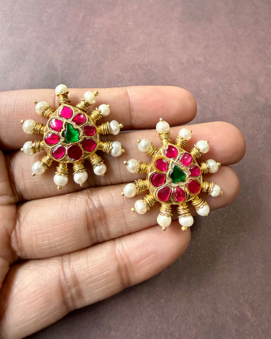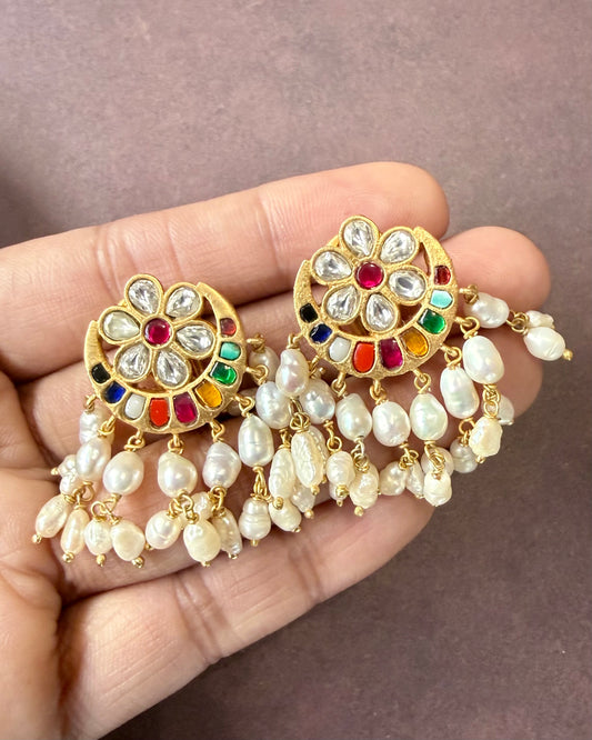 Raani Navratan Pearl Earrings