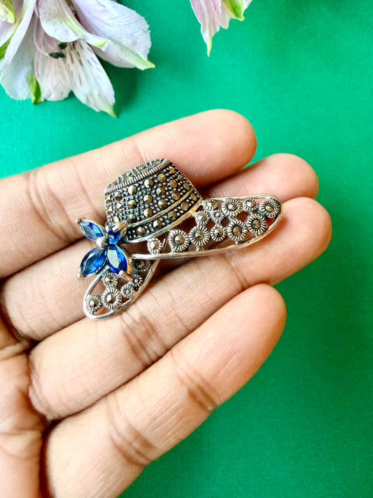 Wide-Brim Hat Marcasite Brooch