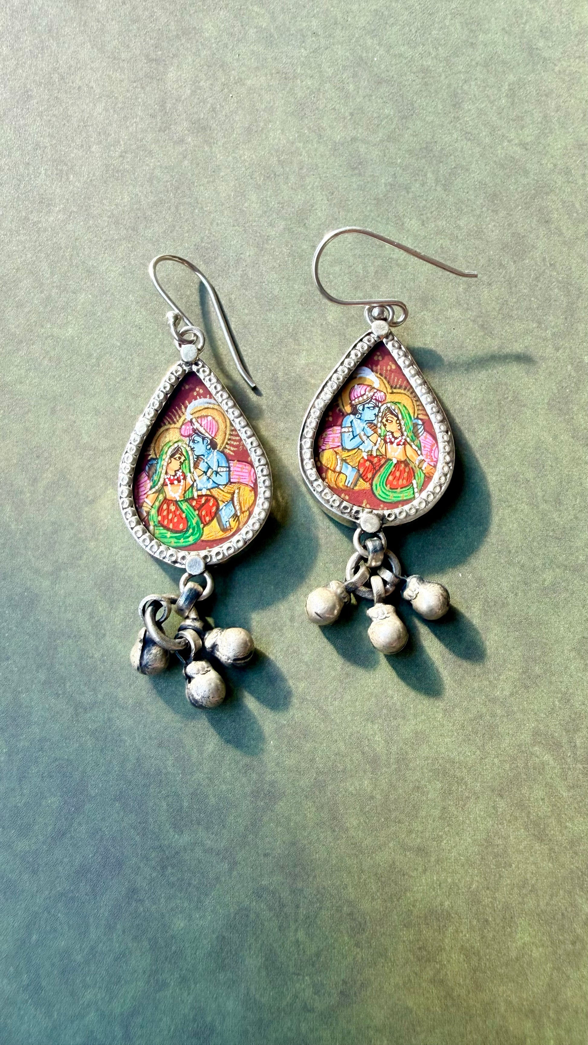 Part of the Leela collection, the Milan silver earrings capture a moment of connection through hand-painted miniature artwork.
