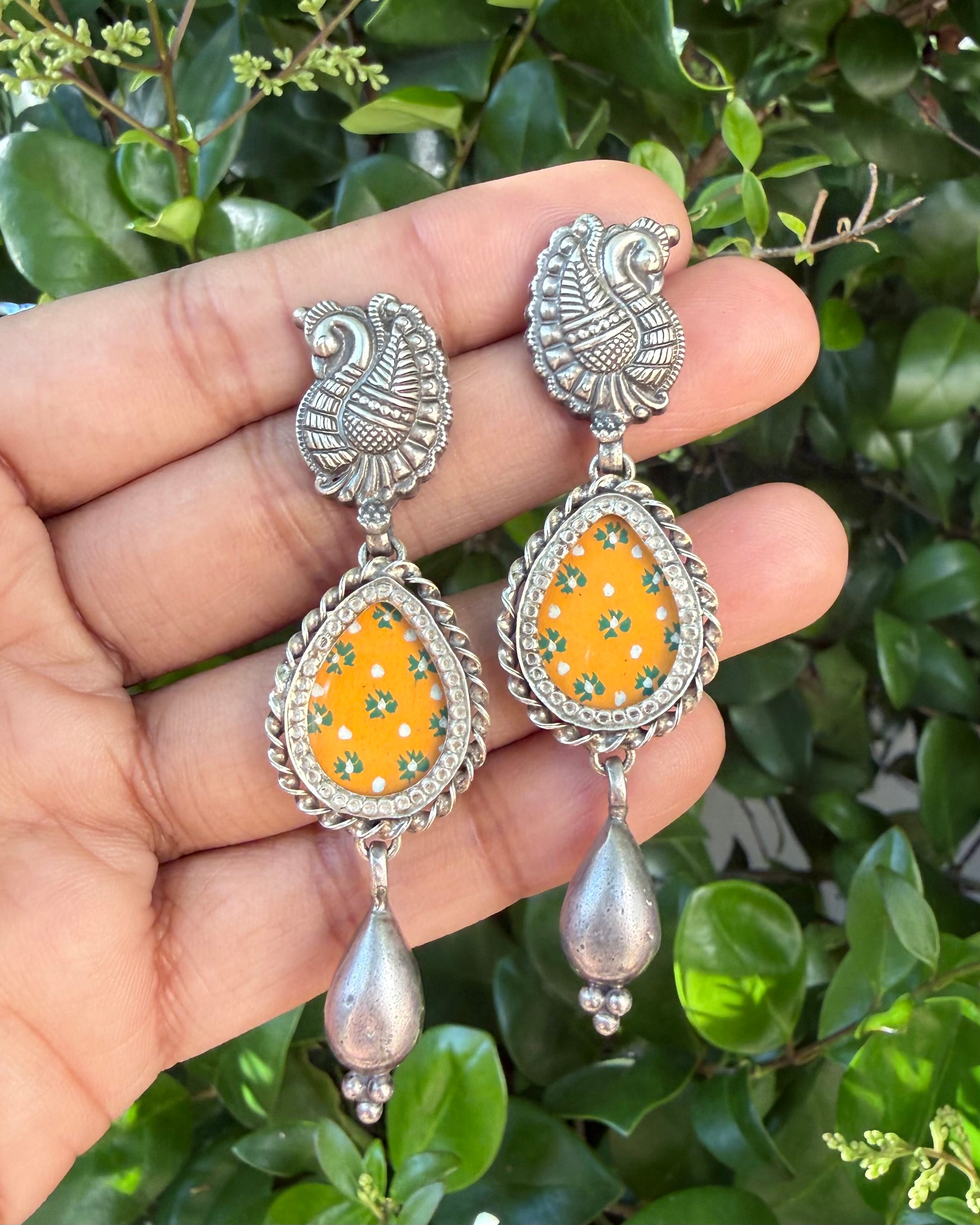 Part of our Leela collection, these earrings feature painted detailing inspired by traditional motifs, set in finely crafted silver. Lightweight and easy to style, they add a refined pop of color with an artistic touch. Effortless to mix, match, and wear your way.