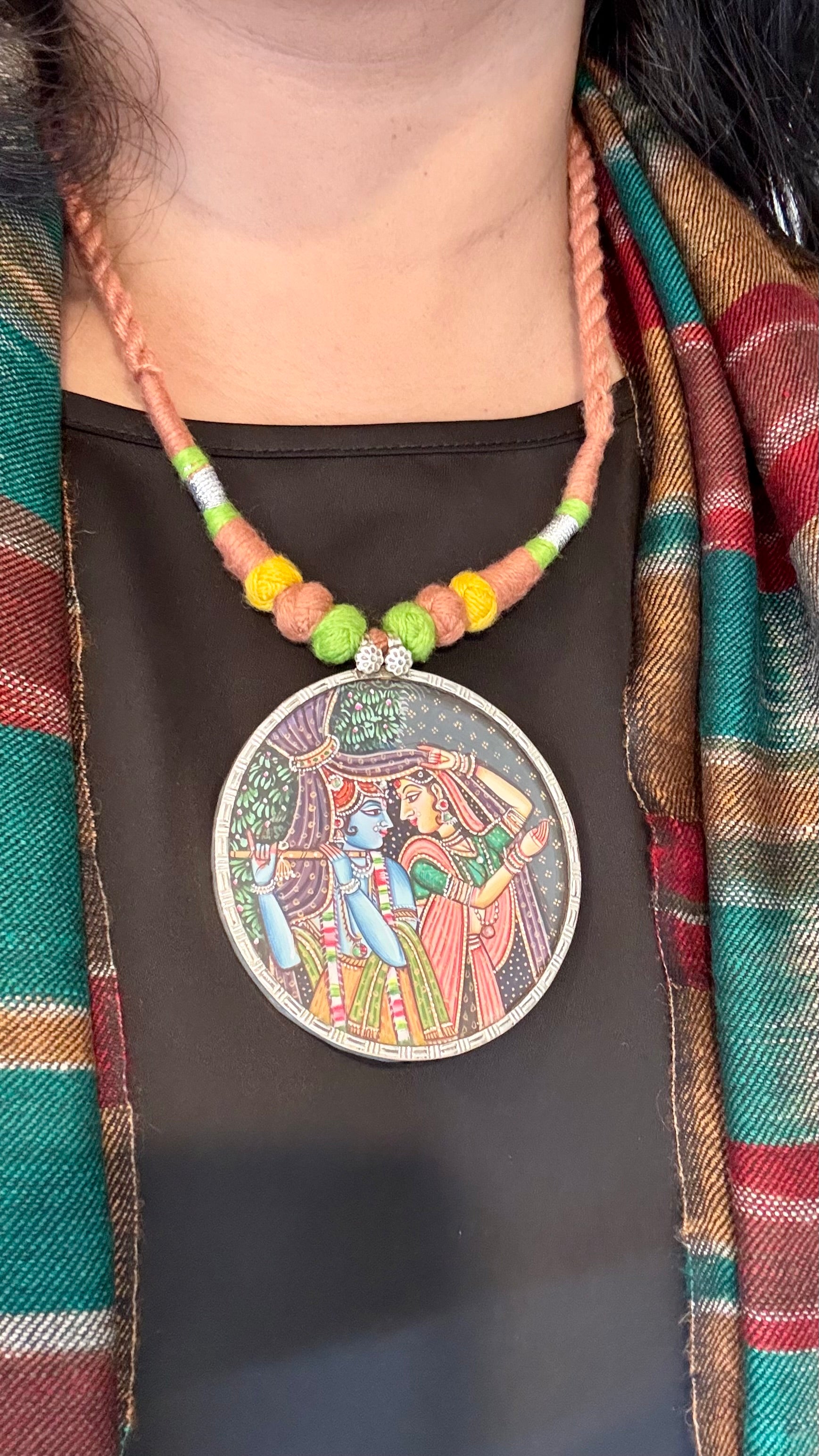 These hand-painted silver pendants bring miniature artwork to life through color, detail, and storytelling. Part of the Leela collection, each pendant is crafted in 92.5 sterling silver and paired with a soft cotton dori finished with an adjustable knot for flexible length and easy styling.