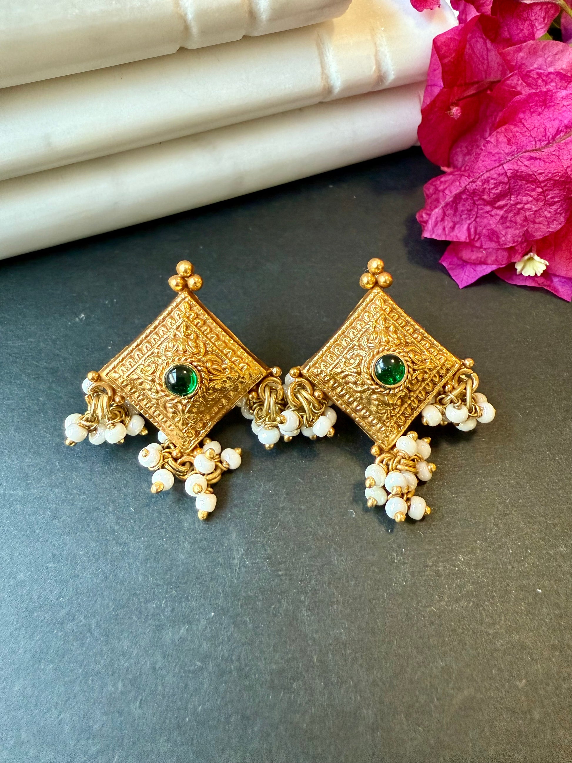 Small but such a statement! These unique square studs in 92.5 silver with intricate work and pearl drops are perfect when you want something different yet easy to wear. ✨