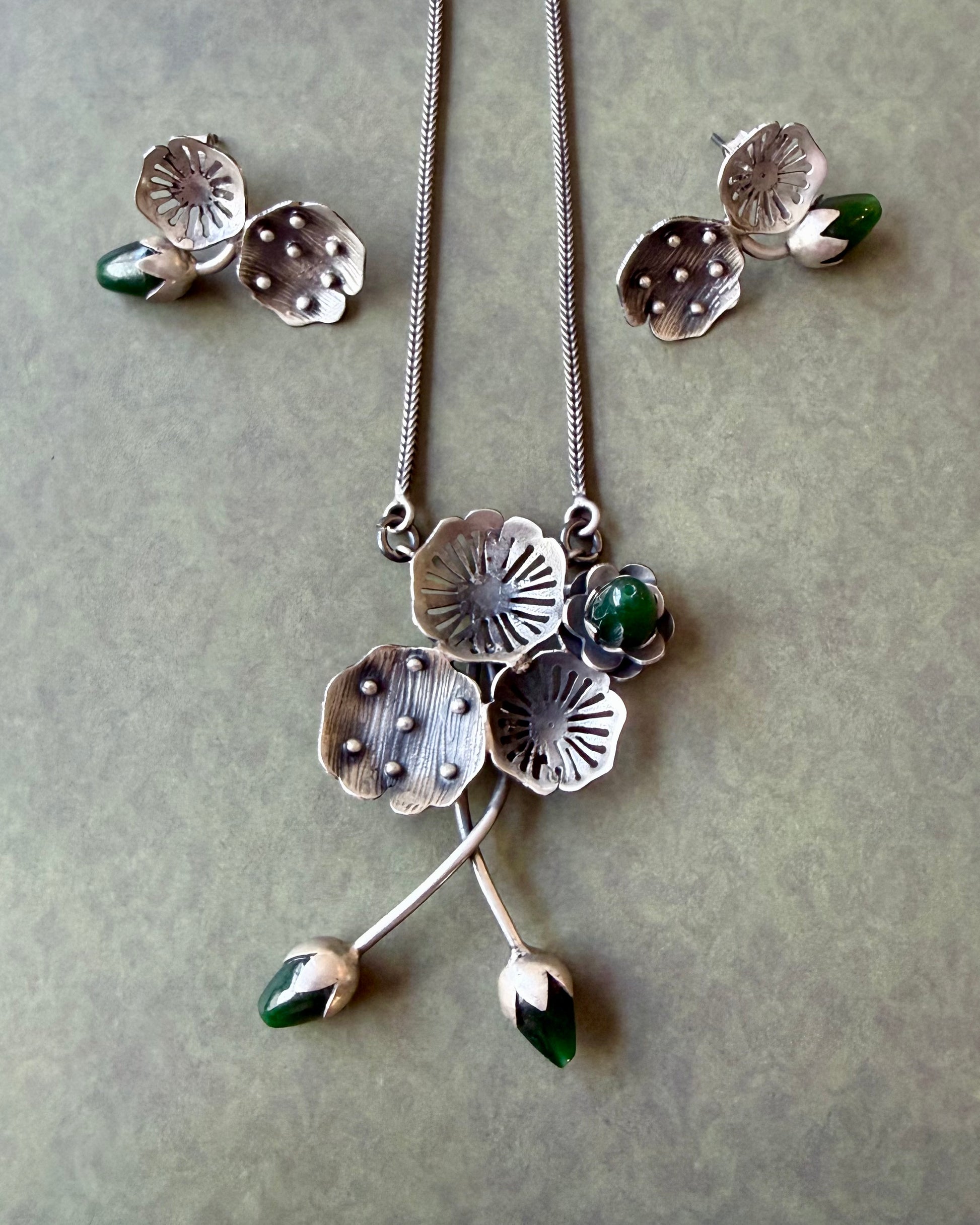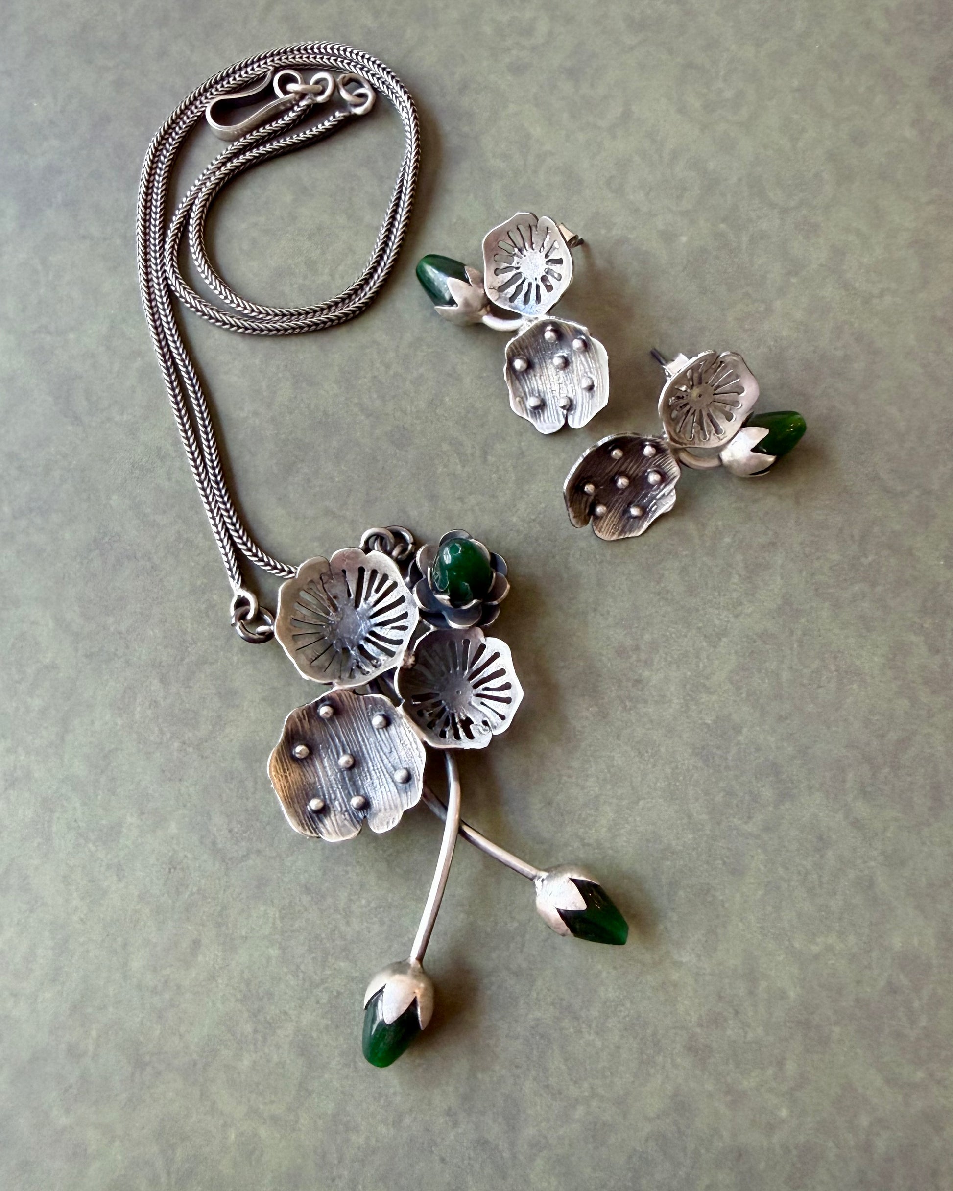 From the VANA collection, this piece brings together lotus forms, textured lily pads, and soft green stone accents in a sculpted, nature-led design. It feels fresh, organic, and quietly striking, with details that draw you in.
